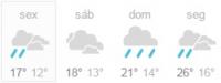 No sábado as taxas de umidade e calor na atmosfera na altura do Paraná, ainda são favoráveis para formação de nuvens de chuva. Com isto são previstas chuvas, mas preferencialmente ocorrem a partir do período da tarde, com possibilidade também de virem acompanhadas de alguma trovoada. As temperaturas apresentam variação mais lenta no período da tarde, e isto principalmente para os setores sul e leste, enquanto nos setores a noroeste do Estado, faz um pouco mais de calor no período.